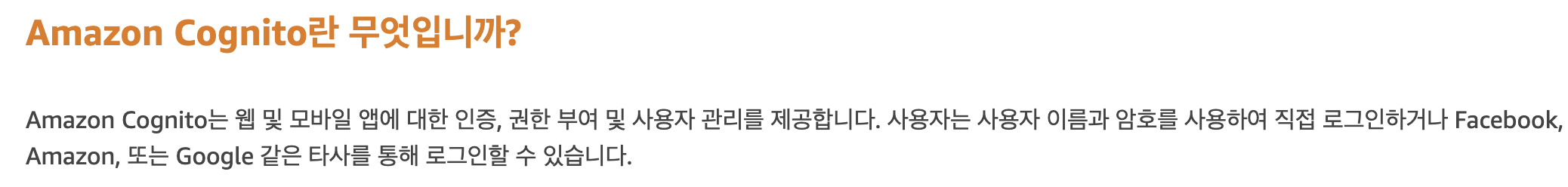 Nickname 중복체크에 관해서 이야기 하기 전에 AWS 공식 홈페이지를 통해서 Cognito가 뭔지 간단하게 알아보겠습니다.